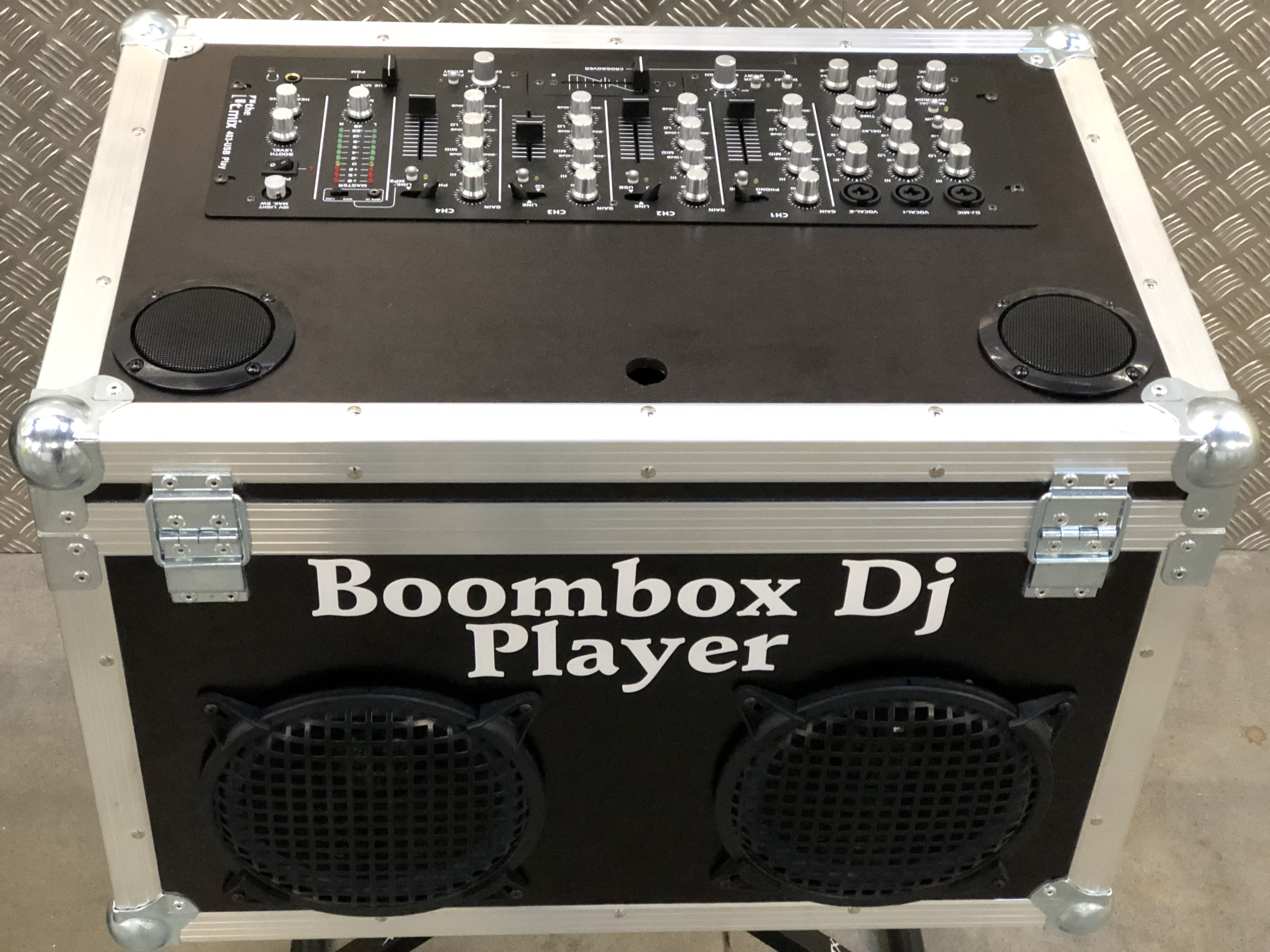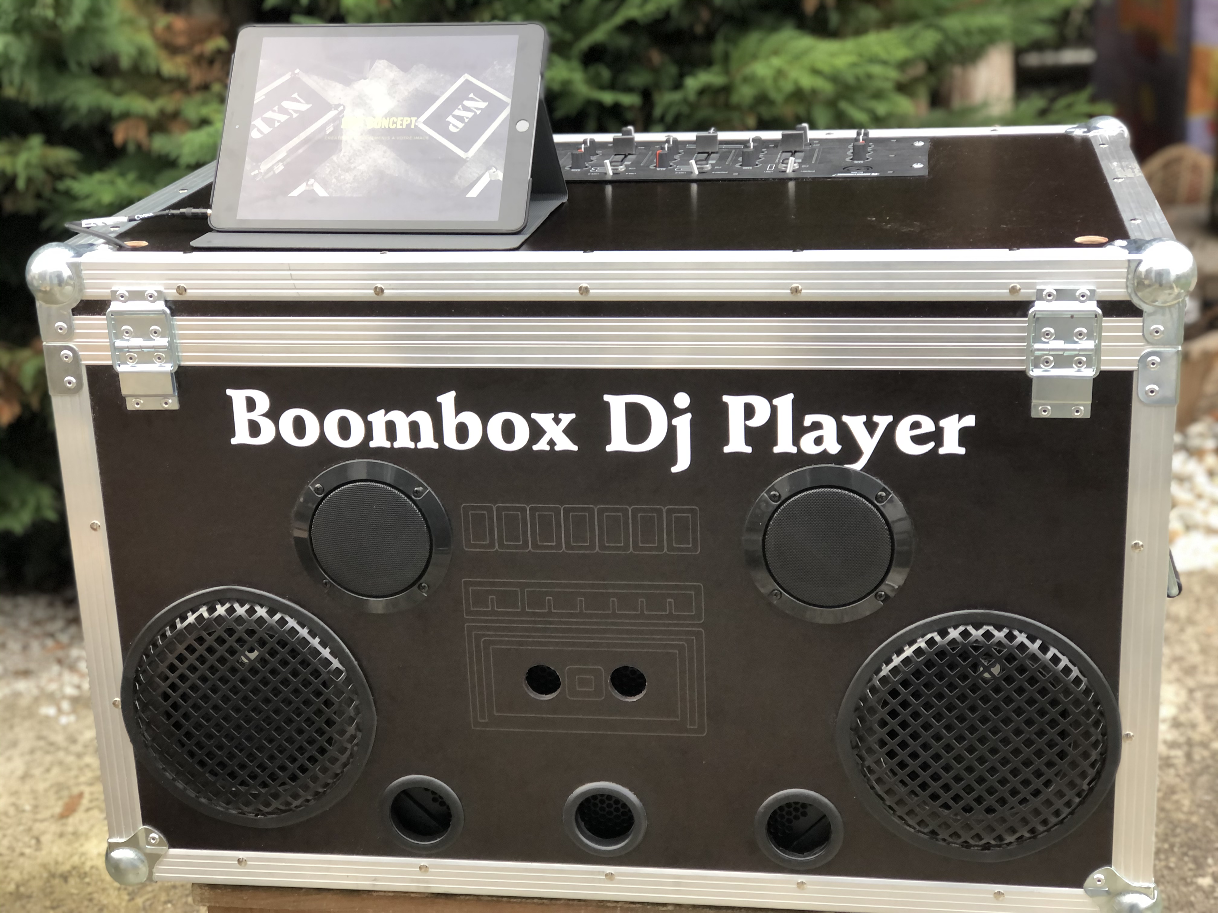 Et bien, la BoomboxDjPlayer, combine tout ceci et permet à celui qui le désire de brancher 1 ou 2 téléphones (n’oublions pas que l’on peut mixer), ou une tablette voir un ordinateur.